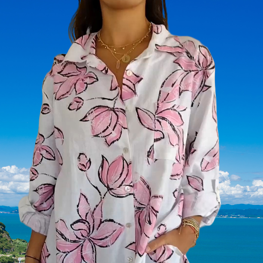 Pakiet zawiera: 1 × Damska letnia lniana sukienka koszulowa z nadrukiem