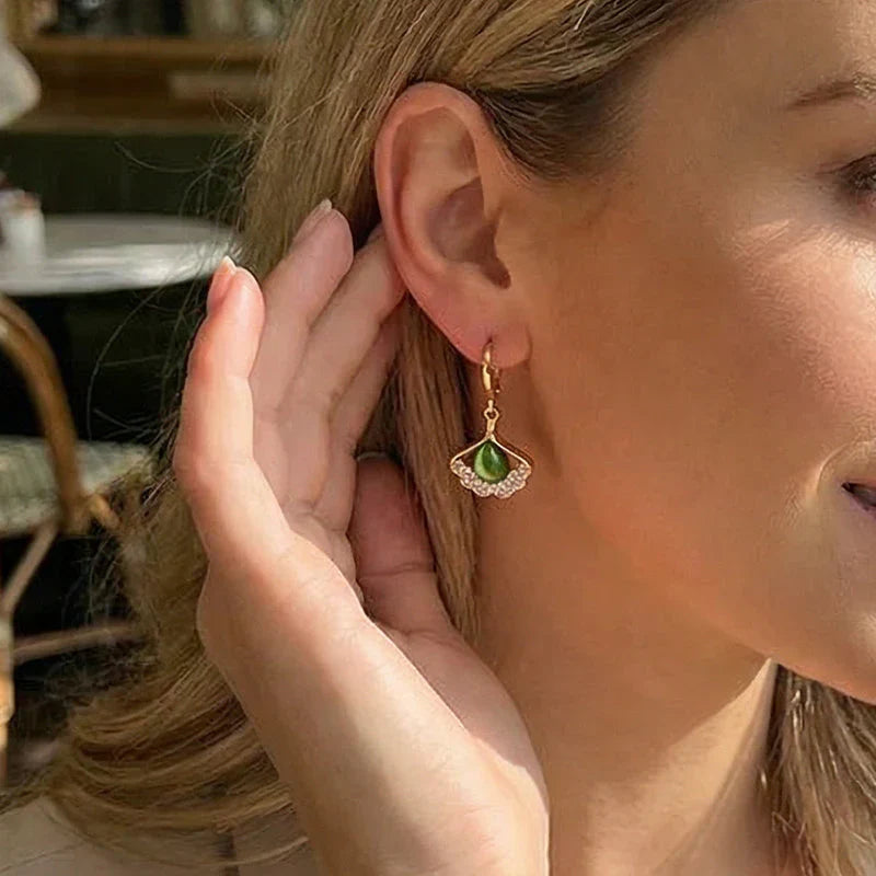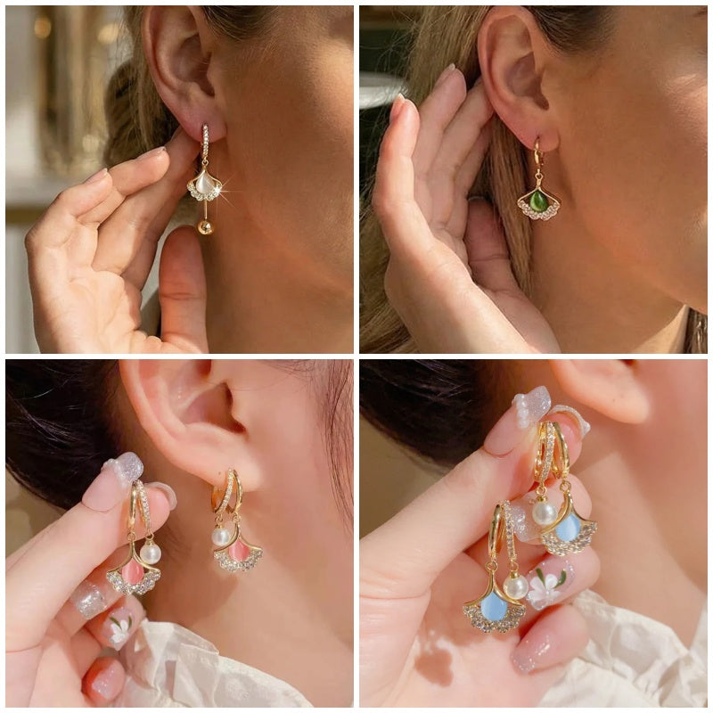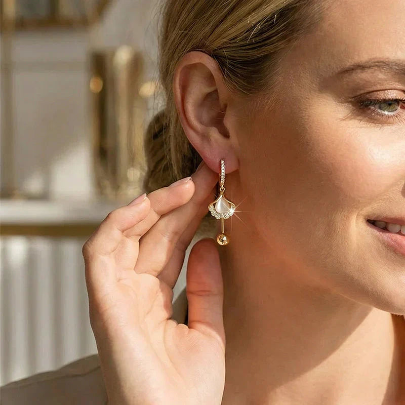 Pakiet zawiera:1 x Błyszczące kolczyki w kształcie liści moreli – w połączeniu z perłami