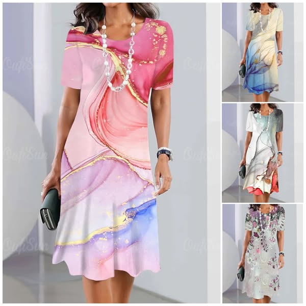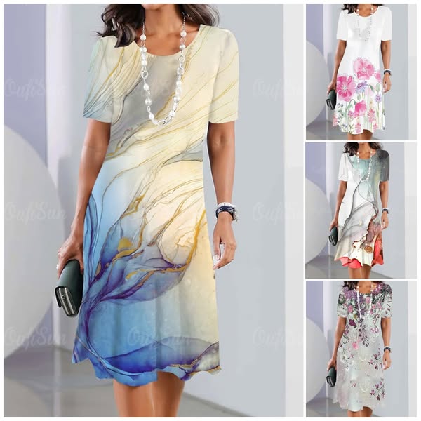 PRZYCIĄGAJĄCY WZROK PROJEKT Z NADRUKIEM: Podnieś swój styl dzięki tej sukience z odważnym, żywym nadrukiem, która zapewnia nowoczesny, szykowny wygląd, idealny na swobodne wyjście lub półformalne wydarzenie.
