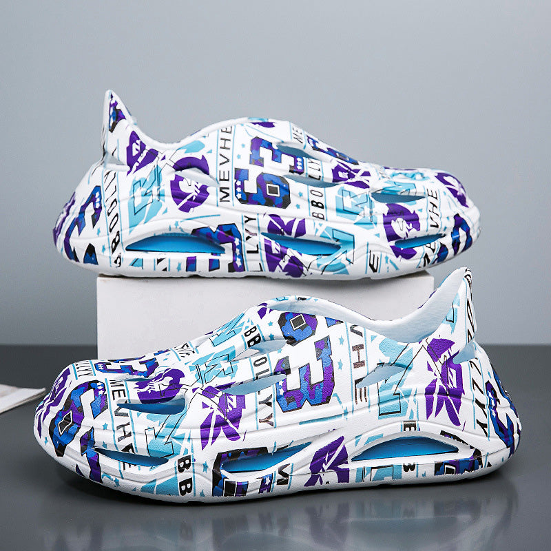 ODWAŻNY STREETWEAROWY DESIGN - te chodaki płynnie łączą solidną funkcjonalność outdoorową z miejskim stylem mody, charakteryzując się odważnymi wzorami graficznymi, które podkreślają indywidualność. Strategiczne wycięcia zwiększają przewiewność, dodając jednocześnie futurystycznej estetyki.