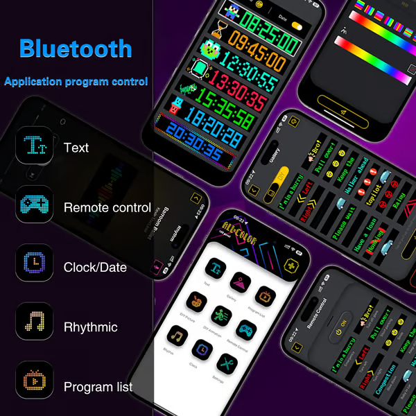 Semnul LED este controlat de o aplicație conectată prin Bluetooth, care acceptă conectarea mai multor afișaje LED în același timp, făcând magazinul dvs. mai atrăgător. Aplicația are încorporate multe moduri și animații interesante. Telefonul dvs. facilitează personalizarea șabloanelor și a textelor distractive pentru a vă personaliza magazinul.