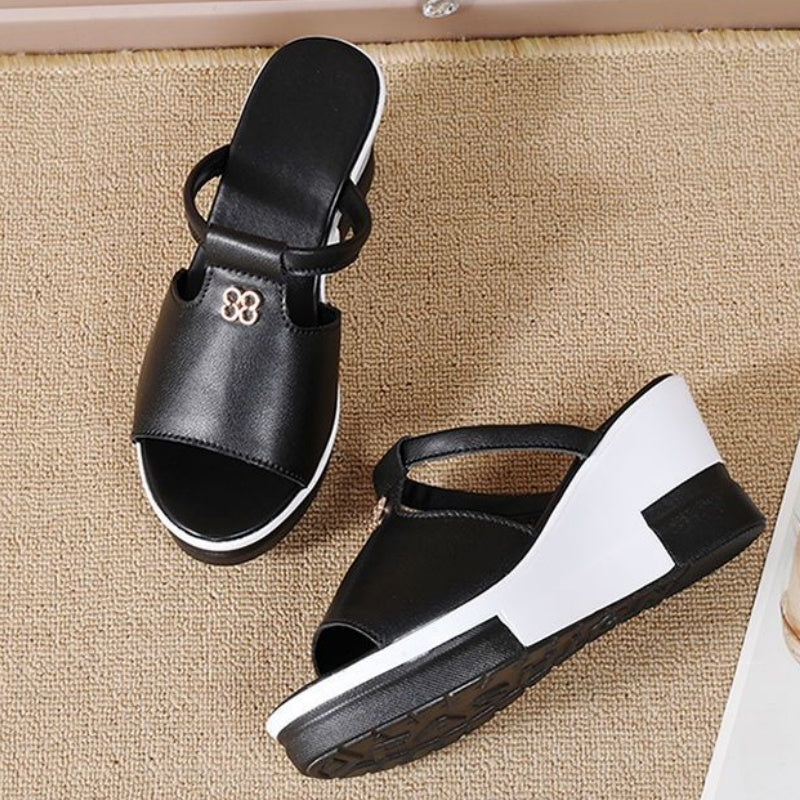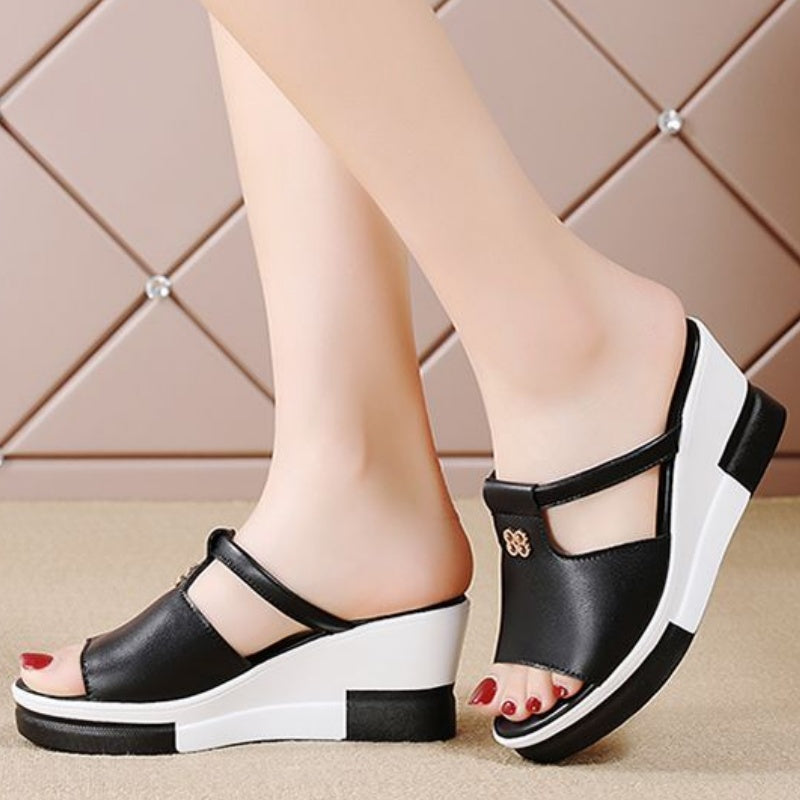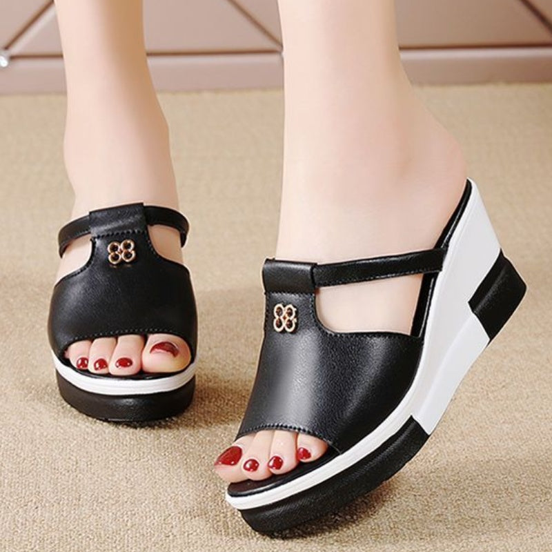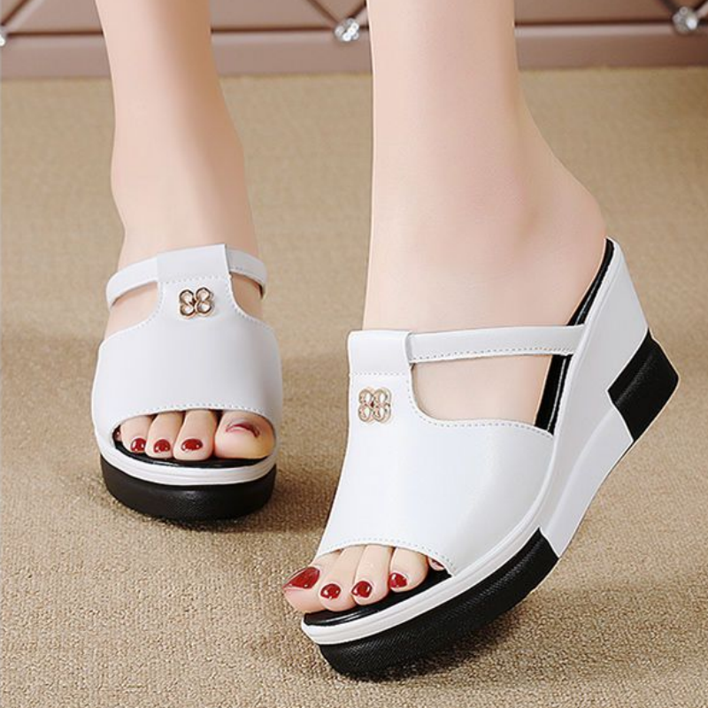 Pakiet zawiera: 1 * Damskie sandały na koturnie z wycięciem na platformie