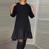 1* Elegancka czarna sukienka z luźnymi zakładkami i siedmioma rękawami