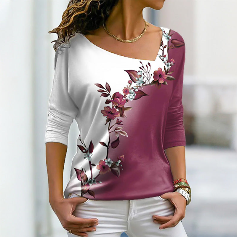 1 * Damska koszulka z długim rękawem w kwiatowy wzór z dekoltem w serek