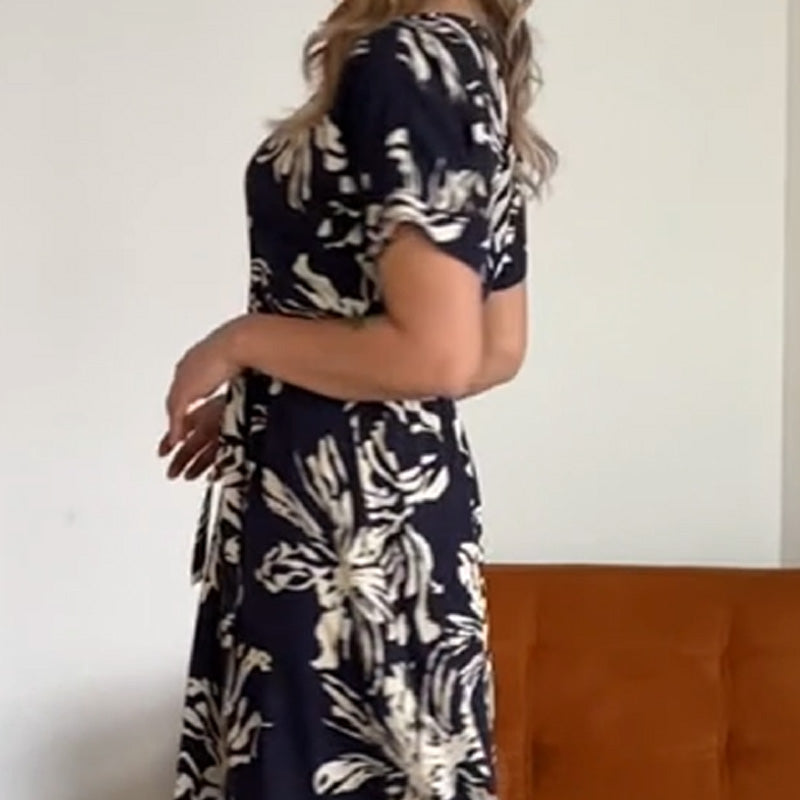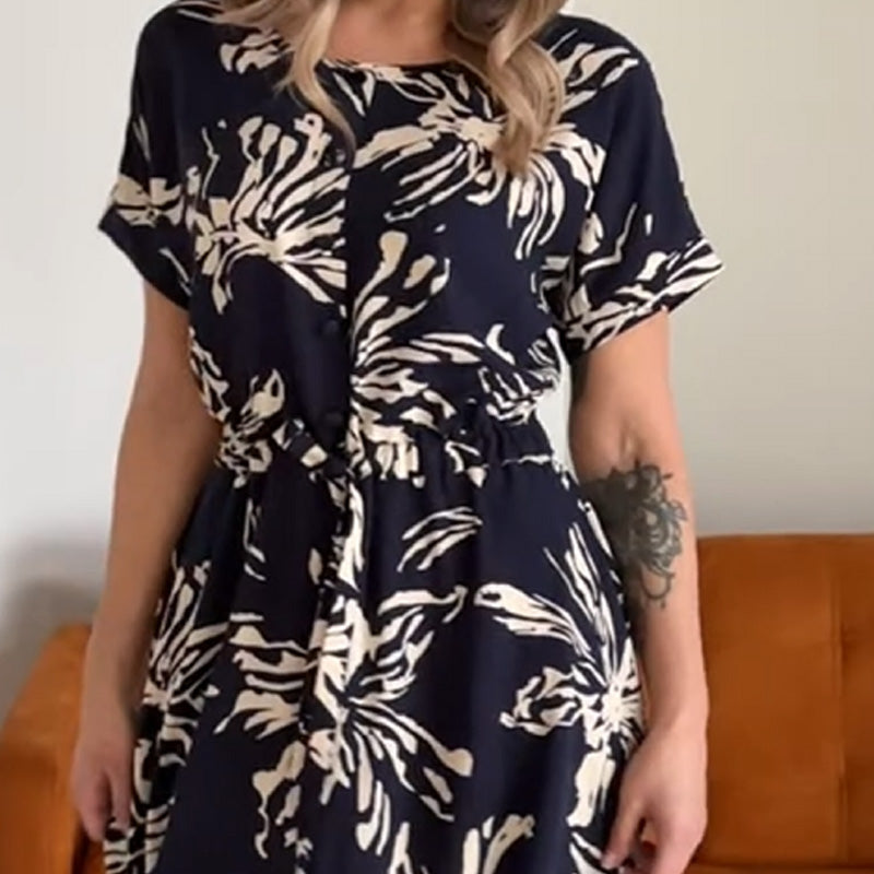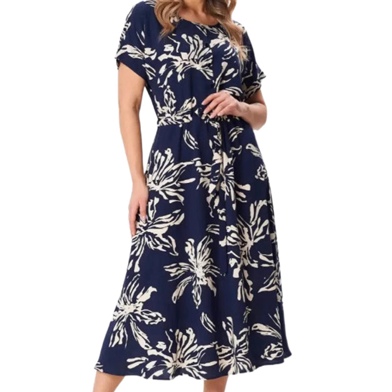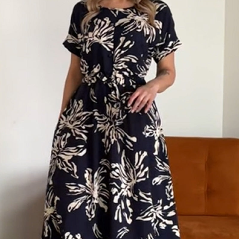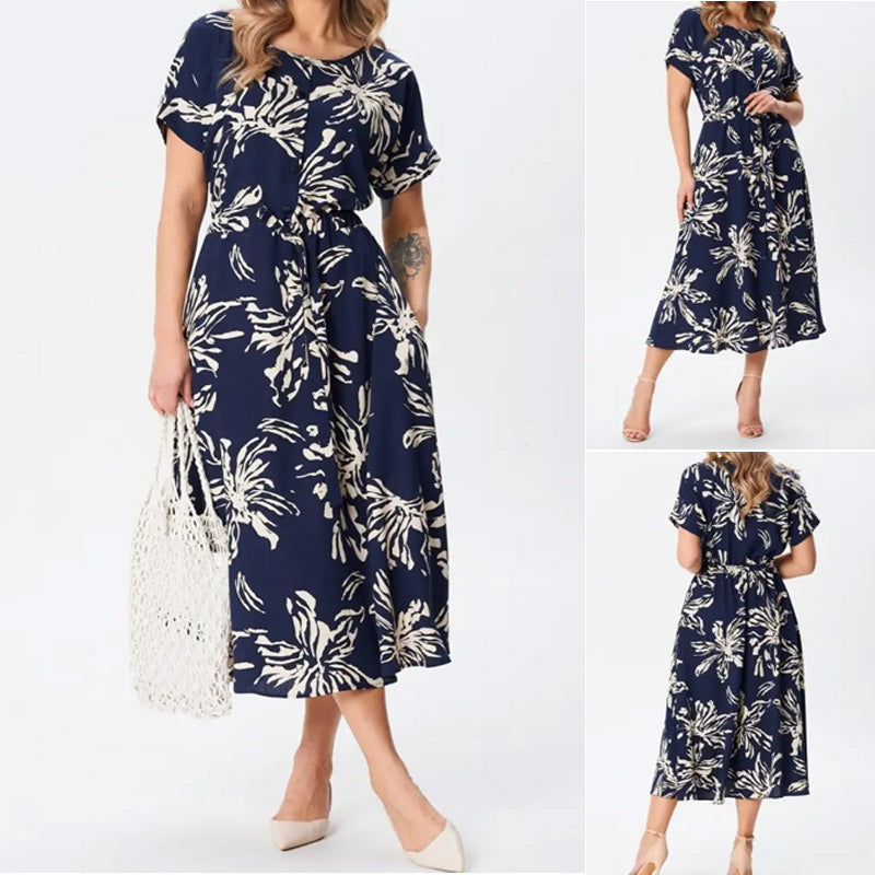 Wykonana z miękkiego, płynnego poliestru sukienka porusza się z gracją. Krótkie rękawy zapewniają okrycie bez przegrzewania - idealne na ciepłe dni.
