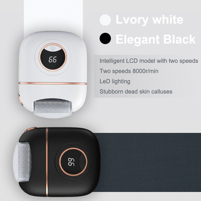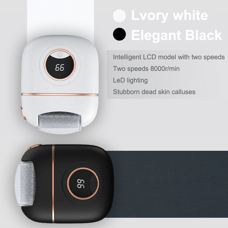 【Wyposażony w monitor】Urządzenie elektryczne jest wyposażone w wyświetlacz LCD, który pozwala wyraźnie zobaczyć pozostały poziom naładowania baterii i pozycję biegu. Wystarczy nacisnąć przycisk, aby włączyć elektryczną szlifierkę nożną w celu efektywnego mielenia. Długie naciśnięcie zamyka elektryczną szlifierkę nożną.