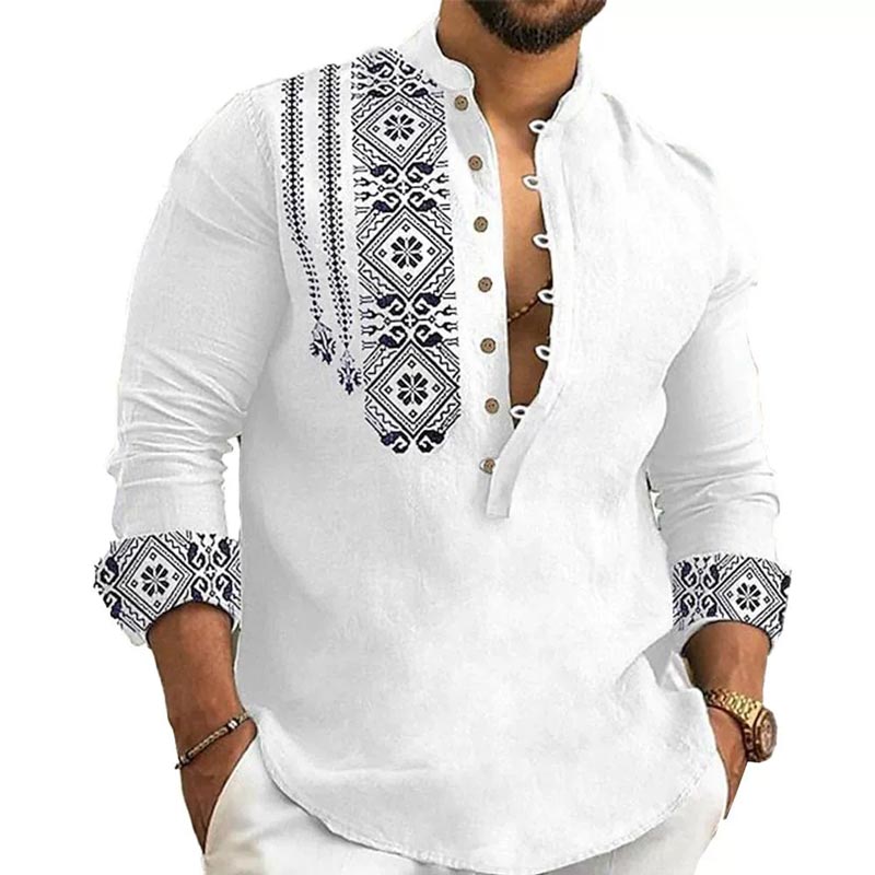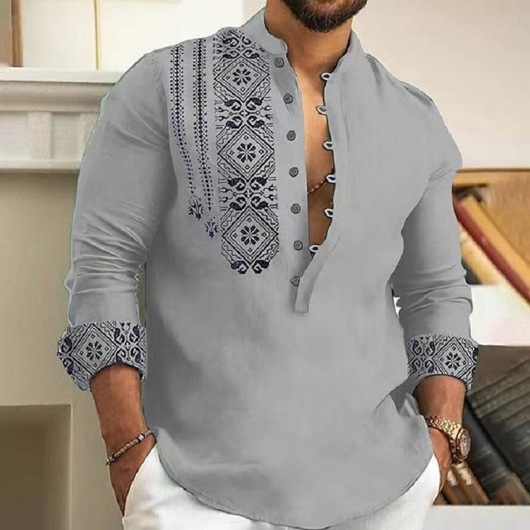 1 * Casualowa koszula z długim rękawem i stójką dla mężczyzn.