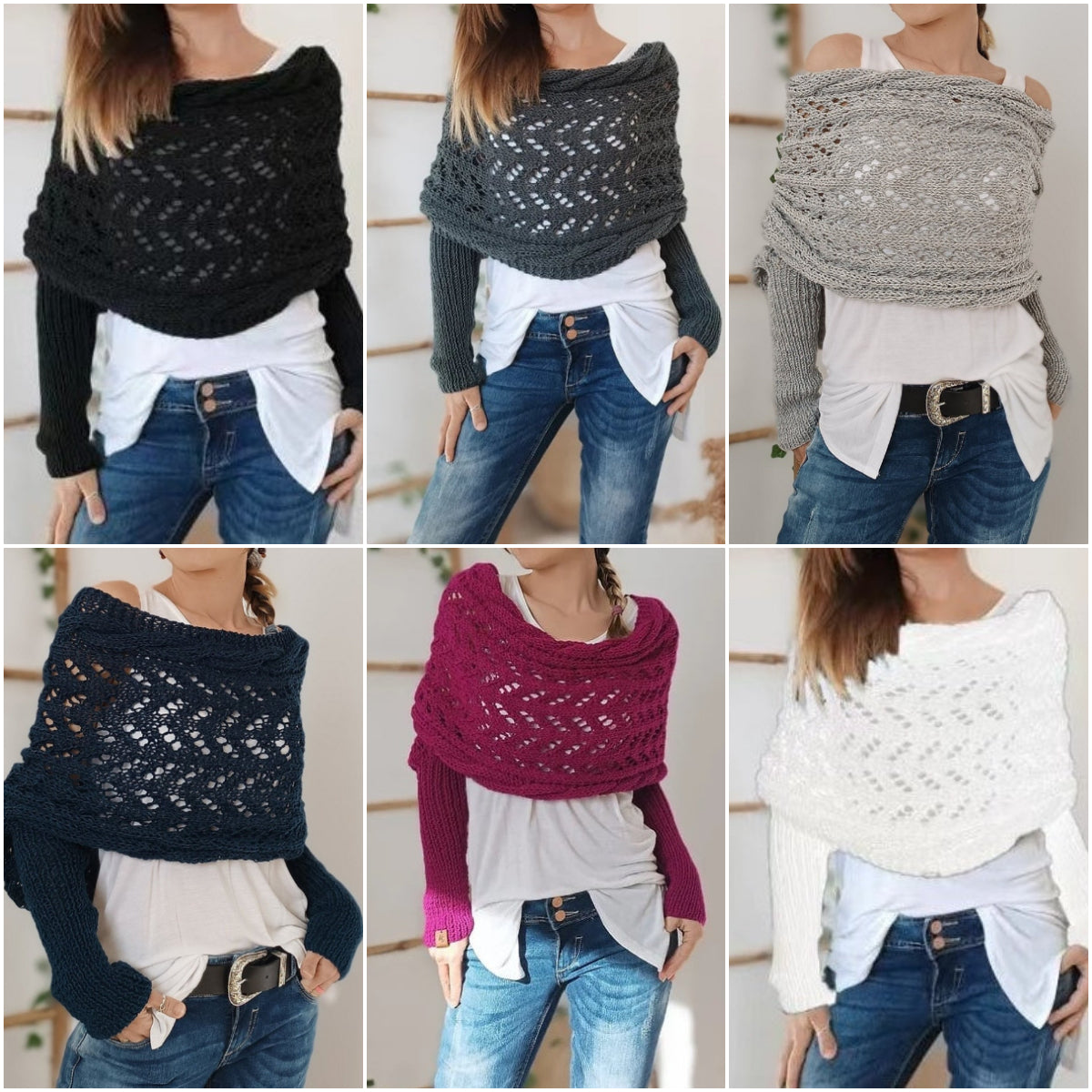IDEALNE NA KAŻDĄ OKAZJĘ: Niezależnie od tego, czy jesteś w biurze, na brunchu, czy relaksujesz się w domu, nasze dzianinowe shrugs są idealnym towarzyszem.