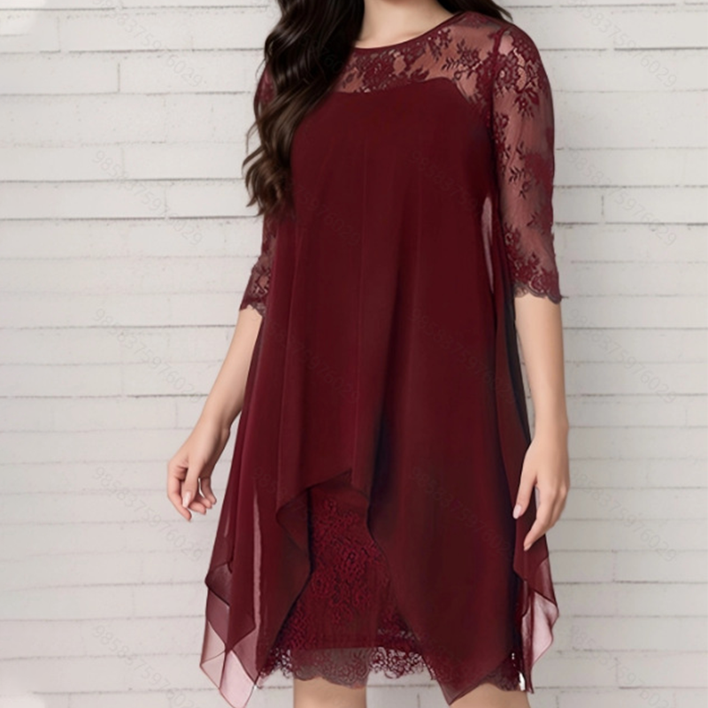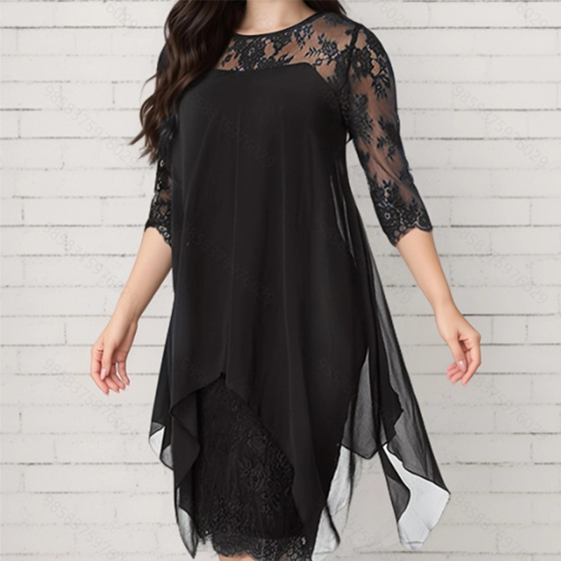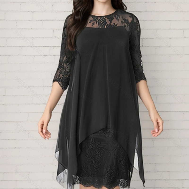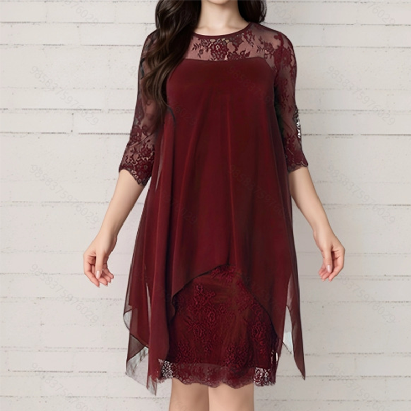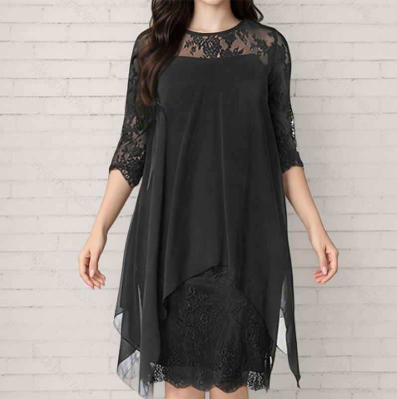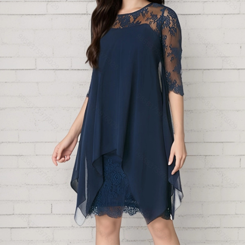Pakiet zawiera: 1 * Elegancka damska sukienka z koronkową nakładką z wysokim stanem