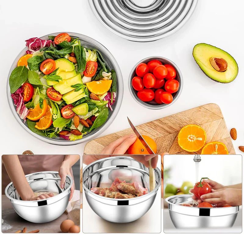 304 STAL NIERDZEWNA – Wszystkie miski kuchenne są wykonane z wysokiej jakości stali nierdzewnej 304 i pokryte powłoką premium, która chroni je przed wgnieceniami i rdzą. Zwiększa to odporność metalowych misek na korozję i zarysowania, dzięki czemu nawet po dłuższym użytkowaniu pozostają one jak nowe.