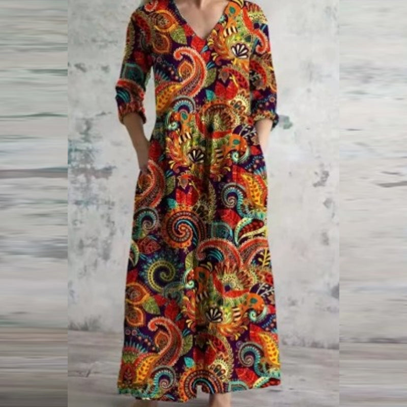 Przyciągający wzrok projekt wydruku-Ta sukienka z żywych, odpornych na fade nadruki dodaje śmiałego i stylowego dotyku do twojej garderoby. Kolory pozostają jasne i żywe, nawet po wielu praniach.