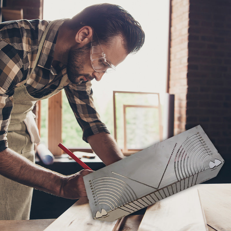 PRECYZYJNY POMIAR:Linijka posiada wyraźne, dokładne oznaczenia z kątem 90°, zapewniając idealne dopasowanie do kwadratowych obiektów. Wycięte linie pozwalają na łatwe rysowanie łuków lub kątów prostych, co czyni ją niezbędnym narzędziem do precyzyjnej pracy.