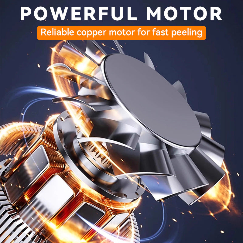 MOCNY SILNIK Z MIEĎNYM WIRNIKIEM – Elektryczna obieraczka wyposażona w silnik o dużej mocy z miedzianym wirnikiem skutecznie i szybko obiera różne owoce i warzywa. Silnik charakteryzuje się stabilną wydajnością i z łatwością obiera nawet mniejsze owoce bez zatrzymywania się lub spadku mocy. Trwały i niezawodny, doskonały pomocnik w kuchni, pozwalający zaoszczędzić czas.