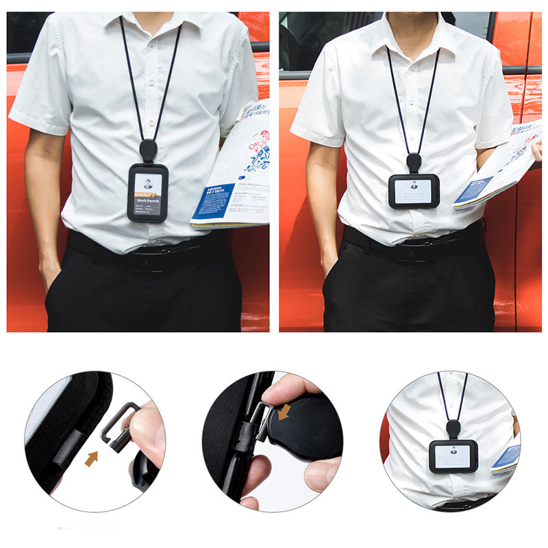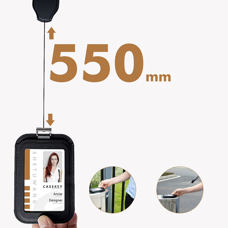SZNUR ZATRZYMUJĄCY – Możesz łatwo skanować lub wyciągać karty bez konieczności zdejmowania paska na szyję. Wyciągana smycz zapewnia szybki i wygodny dostęp, dzięki czemu idealnie nadaje się do dynamicznych środowisk pracy i bezpiecznych budynków.