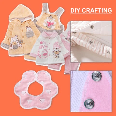 Ten zestaw narzędzi do zatrzasków doskonale nadaje się do zaspokojenia różnorodnych potrzeb związanych z majsterkowaniem lub tworzeniem lekkich ubrań. Można go używać do śliniaków dla niemowląt, kombinezonów do raczkowania, czapek, koszulek, śpioszków, ściereczek do odbijania, strojów dla lalek Barbie/lalek, odzieży dla zwierząt domowych lub wszędzie tam, gdzie potrzebne są zapięcia.