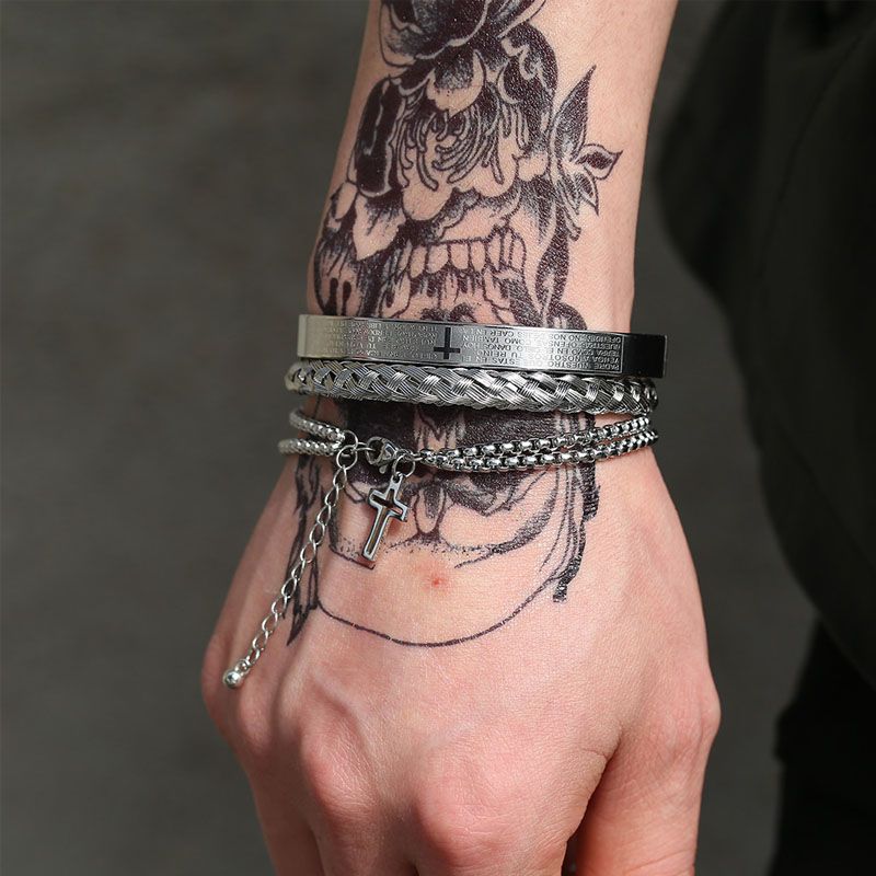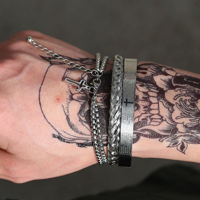 Ten dwuczęściowy zestaw męskich bransoletek ze stali tytanowej to idealny dodatek dla każdego stylowego mężczyzny.