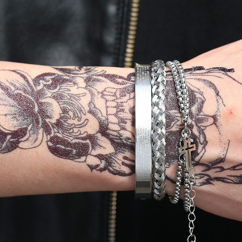 Zestaw zawiera: 1 * męska bransoletka ze stali tytanowej, zestaw 2 sztuki