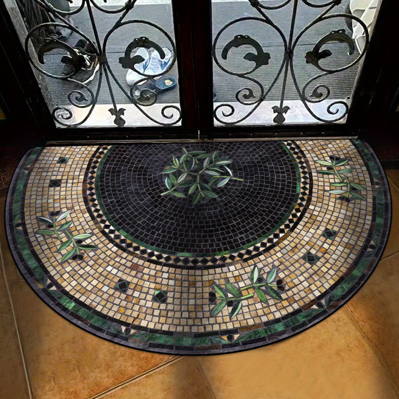 Rafined Patchwork Design : Ten dywan ma unikalne wzory, mieszając geometryczne kształty i detale artystyczne. Każdy kawałek jest starannie zaprojektowany z półkolistymi kształtami i małymi płytkami ułożonymi w złożonym wzorze, tworząc uderzający punkt centralny, który poprawia dekorację każdego pomieszczenia.